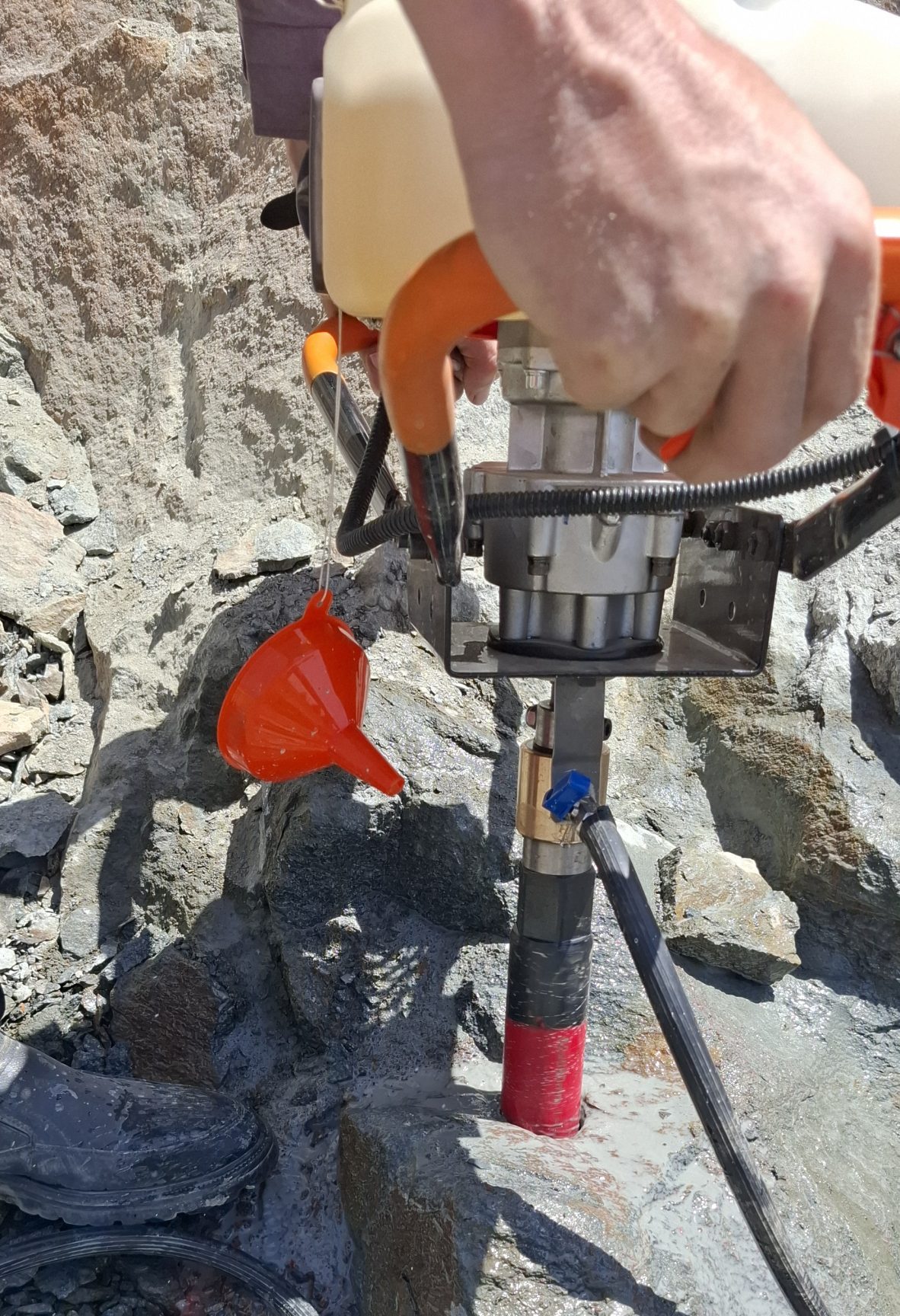 This portable core drilling machine is designed for core sampling of various soil layers, especially in challenging field conditions. Using diamond or steel core drill bits, it can efficiently core granite, concrete-like rocks (Sarooj), and other hard rock formations.