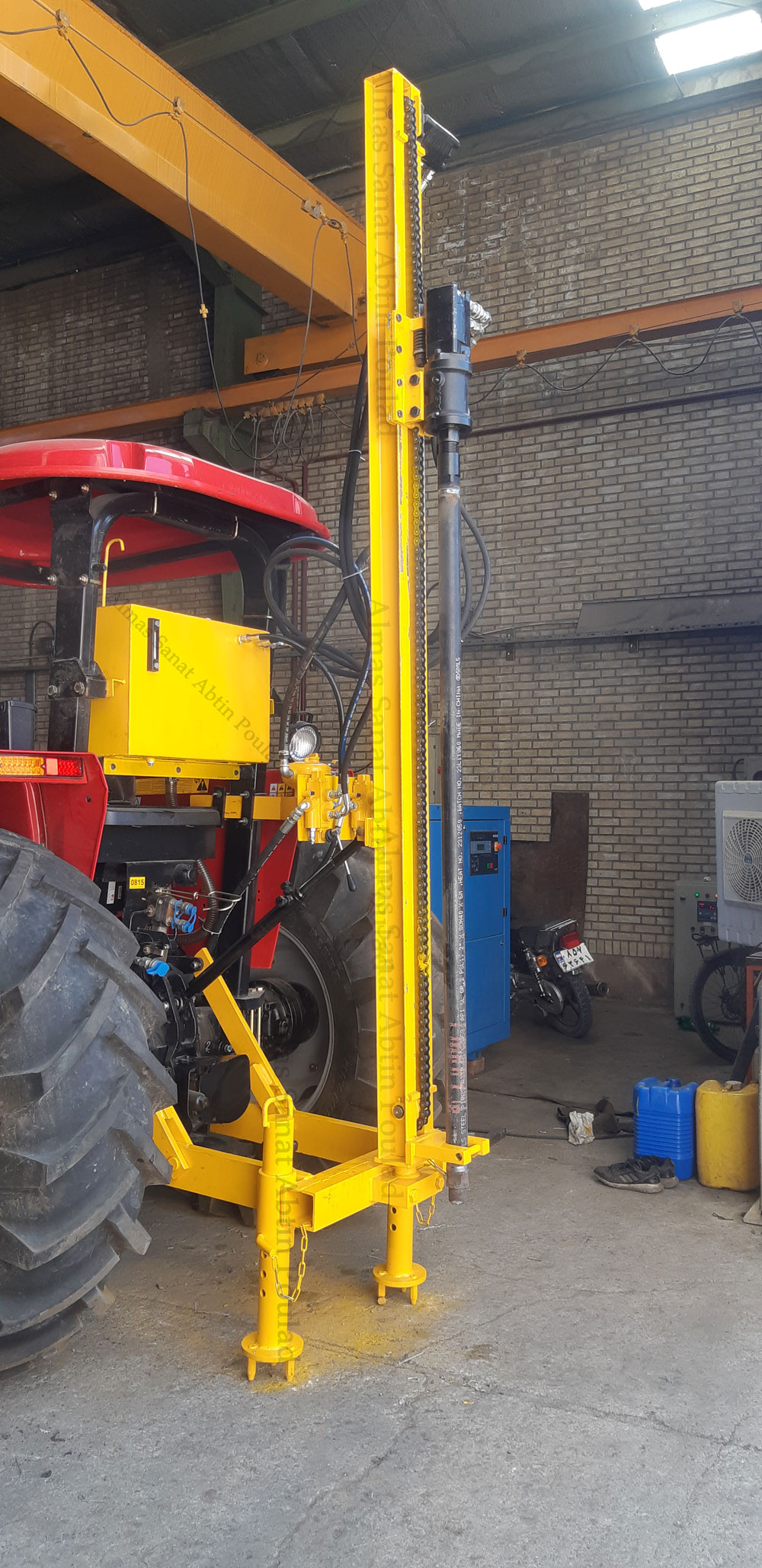 نصب دستگاه حفاری پشت تراکتور با قابلیت حفاری تا عمق 100 متر، راهکاری قدرتمند، قابل حمل و مقرونبهصرفه برای حفاری چاه آب در زمینهای کشاورزی، مناطق روستایی، پروژههای عمرانی سبک، نصب پایه پنلهای خورشیدی و حفاریهای اکتشافی در معادن است. این دستگاه روی انواع تراکتور قابل نصب بوده و با بهرهگیری از تکنولوژی حفاری
